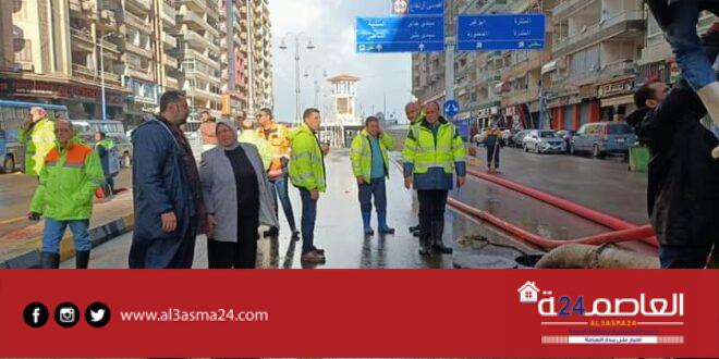 كثف رؤساء الأحياء وجميع الأجهزة التنفيذية المعنية بالإسكندرية التواجد الميداني لمتابعة أعمال كسح تجمعات مياه الأمطار والتأكد من تحقيق السيولة المرورية بكافة شوارع الإسكندرية، في إطار تكليفات اللواء محمد الشريف محافظ الإسكندرية، بالتواجد الميداني على مدار الساعة لمتابعة تداعيات النوة الحالية