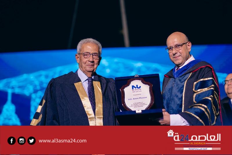 شهد الدكتور محمود محي الدين وعمرو موسي الدبلوماسي والسياسي العتيد حفل تخرج دفعة جديدة من طلاب جامعة النيل