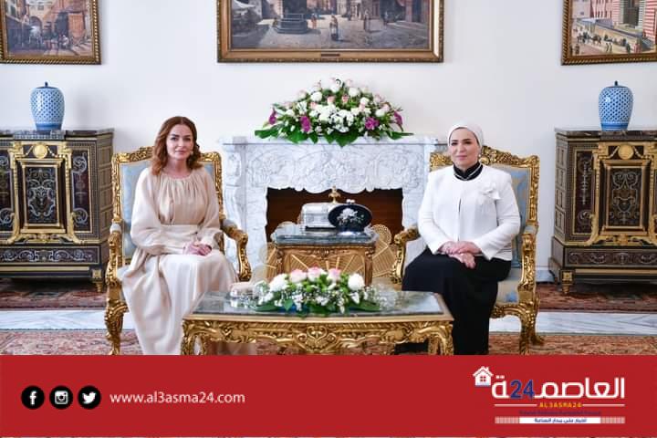 رحبت السيدة انتصار السيسى، قرينة رئيس الجمهورية، بضيفة مصر العزيزة السيدة ميرالا بيشيروفيتش، حرم رئيس مجلس رئاسة البوسنة والهرسك، في زيارتها إلى بلدها الثاني مصر