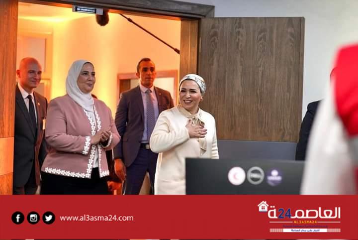 قرينة الرئيس السيسي تزور مستشفي الهلال الأحمر وترافقها وزيرة التضامن الاجتماعي : صور