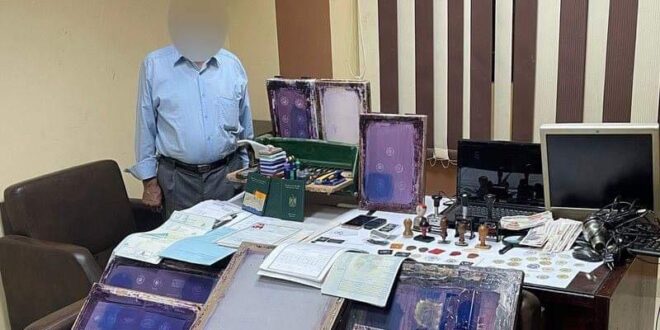 أكدت معلومات وتحريات اللواء طارق الهلالي مدير مباحث قطاع الأحوال المدنية قيام مالك مكتبة ومطبعة مقيم بمحافظة الدقهلية بممارسة نشاطاً إجرامياً تخصص فى إصطناع وتزوير بطاقات الرقم القومى والإحتفاظ بالمعدات المستخدمة فى ذلك النشاط داخل مسكنه وذلك نظير مقابل مادى عقب تقنين الإجراءات بالتنسيق مع مديرية أمن الدقهلية تم إستهداف المذكور وأمكن ضبطه بمسكنه وبحوزته عدد من أختام شعار الجمهورية وأكلاشيهات منسوبين لعدد من الجهات – جهاز “لاب توب” يحتوى على برامج تستخدم فى عمليات التزوير – كمية كبيرة من المستندات وأوراق منسوبة لبعض الجهات ممهورة بشعار الجمهورية “مزورة” – مبلغ مالى”من متحصلات نشاطه” -3 هواتف محمولة “تحوي على آثار ودلائل على نشاطه”) ، وبمواجهته إعترف بما ورد من معلومات.