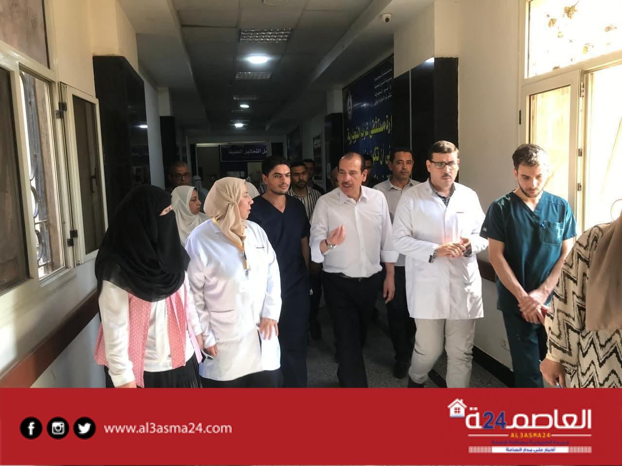 كما تفقد الأقسام الداخلية واطلع على الحالات المرضية، وحرص على التحدث مع المرضى والاستماع إلى آرائهم حول جودة الخدمات ورعاية المستشفى. وشملت الجولة أقسام الرعاية المركزة ورعاية الأطفال حديثي الولادة، حيث شدد على الالتزام بإجراءات مكافحة العدوى، إلى جانب تفقد قسم الغسيل الكلوي للاطمئنان على انتظام الجلسات وتوافر المحاليل، فضلًا عن الصيدلية ومتابعة توافر الأدوية الأساسية