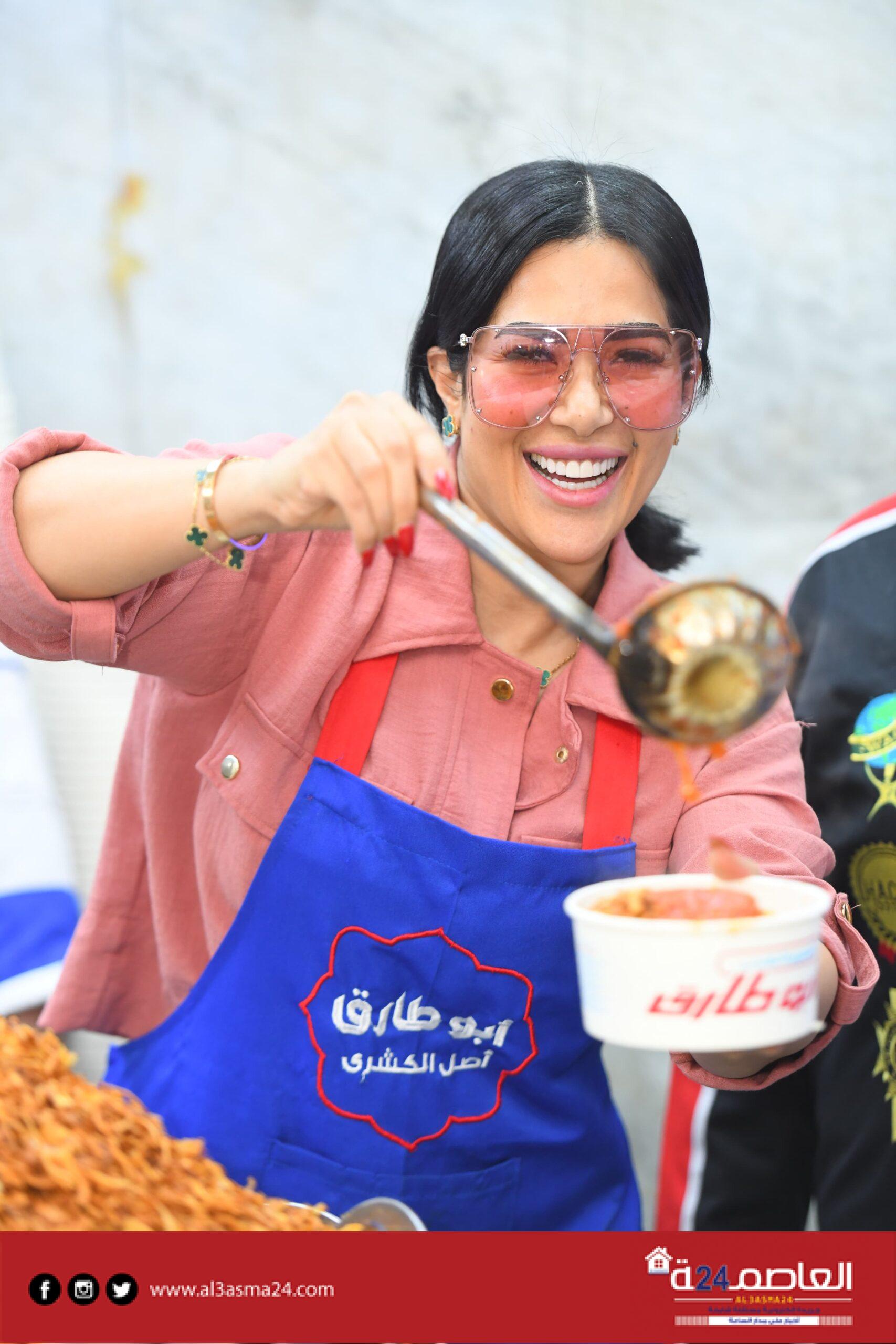 ووسط الجمهور قامت علياء بعمل كشيف على طاولة الكشرى امام جميع الحضور