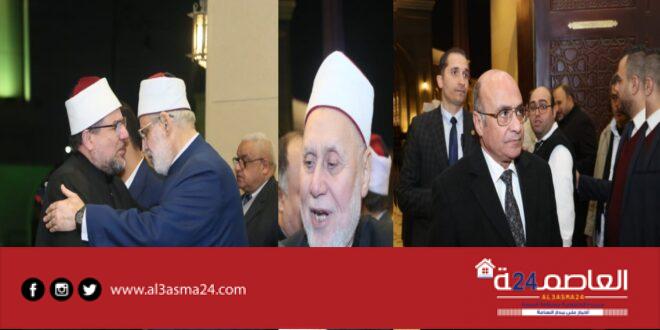 حيث جاء علي رأس الحاضرين فضيلة الإمام الأكبر الدكتور أحمد الطيب شيخ الأزهر الشريف والدكتور شوقي علام مفتي الجمهورية والأنبا أرميا الأسقف العام بالكنائس المصرية