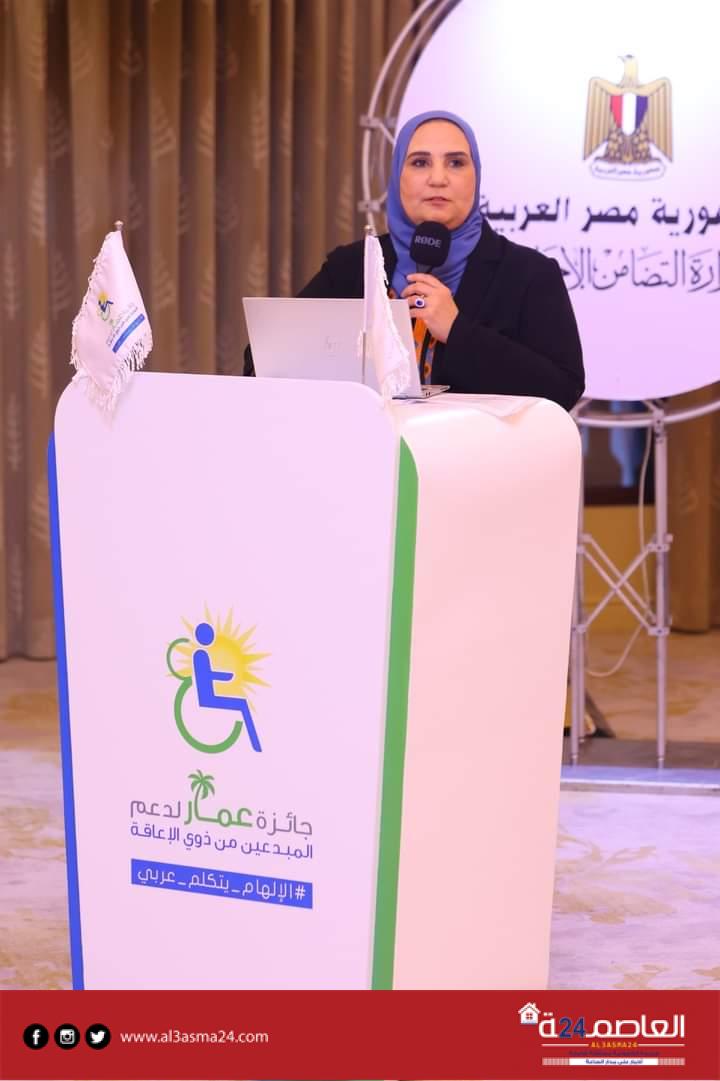 ووجهت وزيرة التضامن الاجتماعي التحية للدكتور عمار بوقس، رئيس مجلس إدارة جمعية الإرادة للموهوبين من ذوي الإعاقة، والأمين العام لجائزة عمار لدعم المبدعين من ذوي الإعاقة، وفريق عمله، مؤكدة أن الدكتور عمار هو شخص ملهم وهو قاهر المستحيل كما يٌلقب دائما، فقد وظف قلمه وكتاباته بحنكة ورشاقة وحقوقية للدفاع عن حقوق ذوي الإعاقة، وإثبات أنهم قادرون ولو باختلاف، وأصحاب همم وعزائم، بالإضافة إلى شعوره بالمسئولية بالبحث عن المواهب وتسليط الضوء عليها وفتح أبواب الفرص المتكافئة أمامهم، حتى تتهلل هذه المواهب، وتُلمع وتشرق وتتحقق بشكل يقهر إعاقتها ويثبت أنهم بحق “قادرون