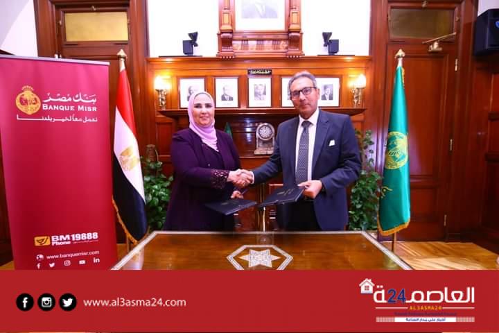 وزيرة التضامن الاجتماعي ورئيس بنك مصر ،يوقعان بروتوكول تعاون بين صندوق دعم مشروعات الجمعيات والمؤسسات الأهلية : صور