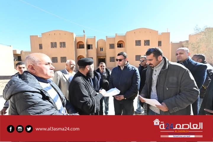 كما تجول وزير الإسكان ومرافقوه، بموقع المباني السكنية بمنطقة الزيتونة، للوقوف على نسب إنجاز الوحدات، موجهاً بدفع العمل بالمشروع، ومنها أعمال المسطحات، ومراجعة أعمال التشطيبات الخارجية والواجهات وتلافي الملاحظات، والبدء في أعمال تنسيق الموقع المحيطة بالمباني التي انتهى التشطيب بها، والانتهاء من مختلف الأعمال بالمشروع بالتوازي مع التشطيب الداخلي والخارجي للمباني
