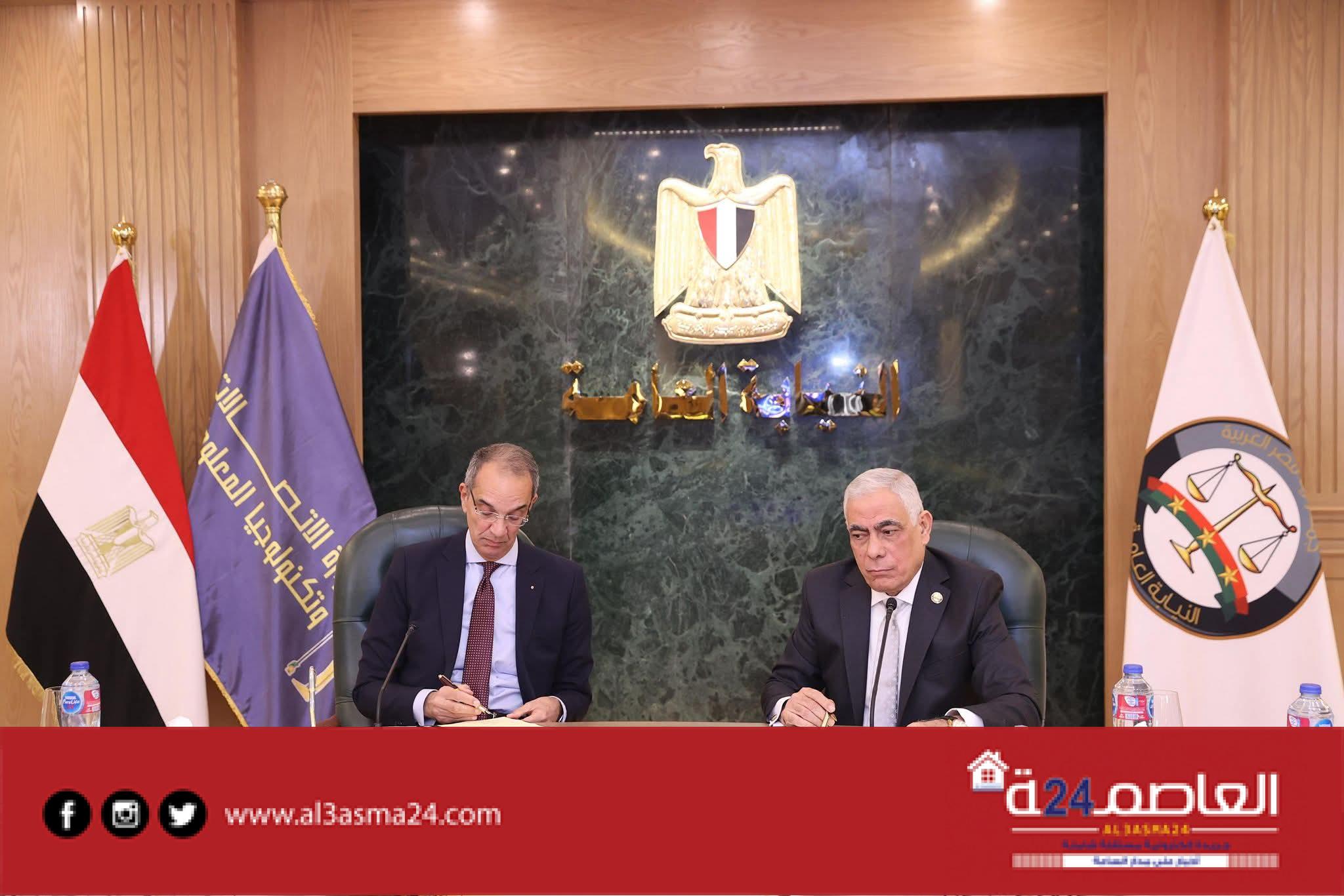 وزير الاتصالات والنائب العام يوقعان بروتوكول تعاون لتنفيذ 10 مشروعات لتطوير وتحديث منظومة التحول الرقمي بالنيابة العامة | صور