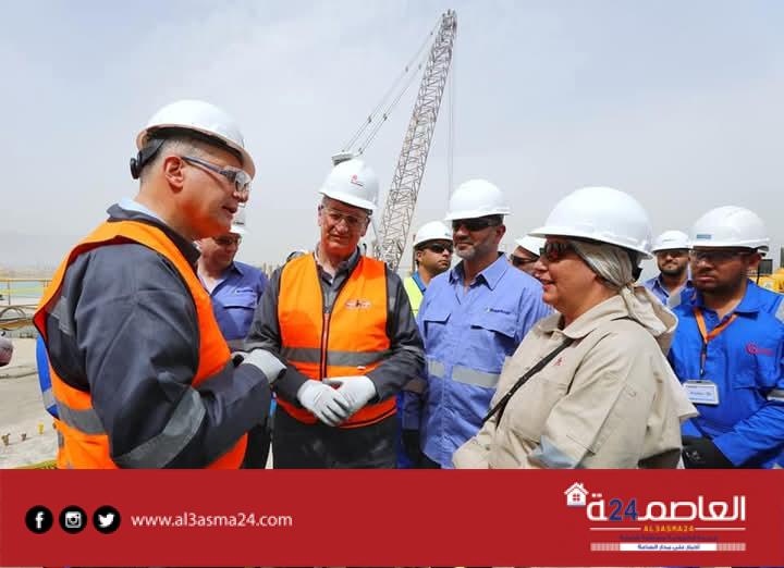 كما تفقد الوزير و مرافقوه مشروع تجهيز الرصيف البحرى الثانى بميناء سوميد لاستقبال سفينة تغييز أخرى والذى تم بدء العمل فيه منذ سبتمبر الماضى ويعد أحد المشروعات القومية الاستراتيجية لدعم الشبكة القومية للغاز ، وأوضح المهندس محمد عبدالحافظ أنه تم بالفعل الانتهاء من تنفيذ المشروع وأعمال التركيبات بنسبة ١٠٠% ويجرى حالياً عمليات الاختبار التجريبى تمهيداً لإستقبال ورسو سفينة التغييز