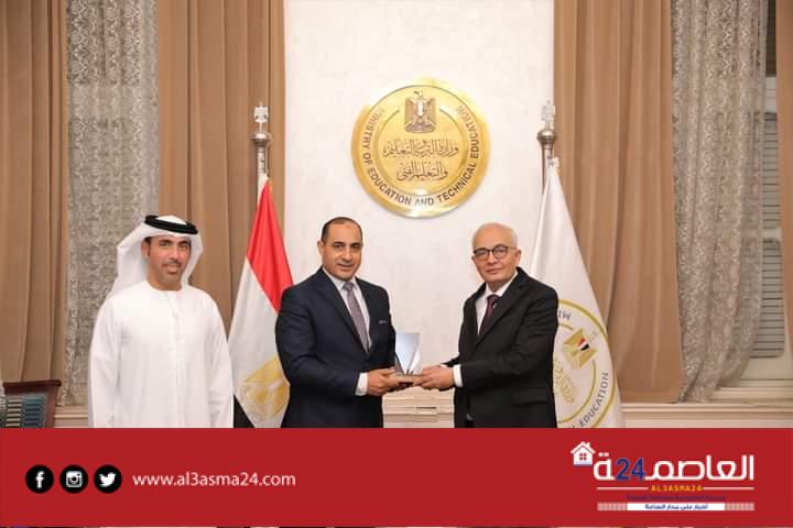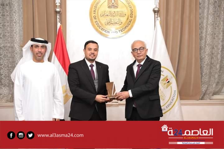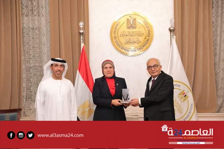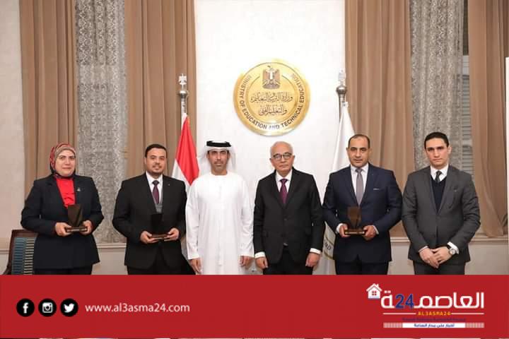 كرم الدكتور رضا حجازي وزير التربية والتعليم والتعليم الفني، اليوم، المعلمين الفائزين في المرحلة الأولى من مسابقة جائزة محمد بن زايد لأفضل معلم، بحضور الدكتور حمد الدرمكي أمين عام الجائزة