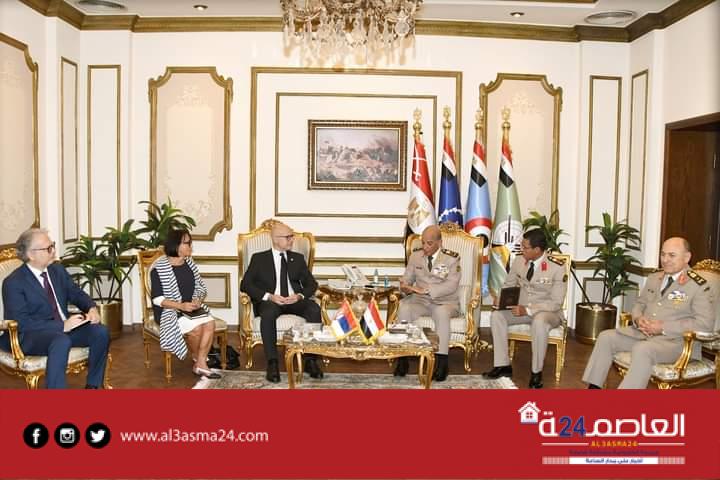 وأعرب القائد العام للقوات المسلحة عن إعتزازه بعلاقات الشراكة التى تربط القوات المسلحة المصرية والصربية فى مختلف المجالات العسكرية ، مؤكداً حرص القيادة العامة للقوات المسلحة على زيادة أواصر التعاون فى مختلف المجالات العسكرية لكلا البلدين الصديقين