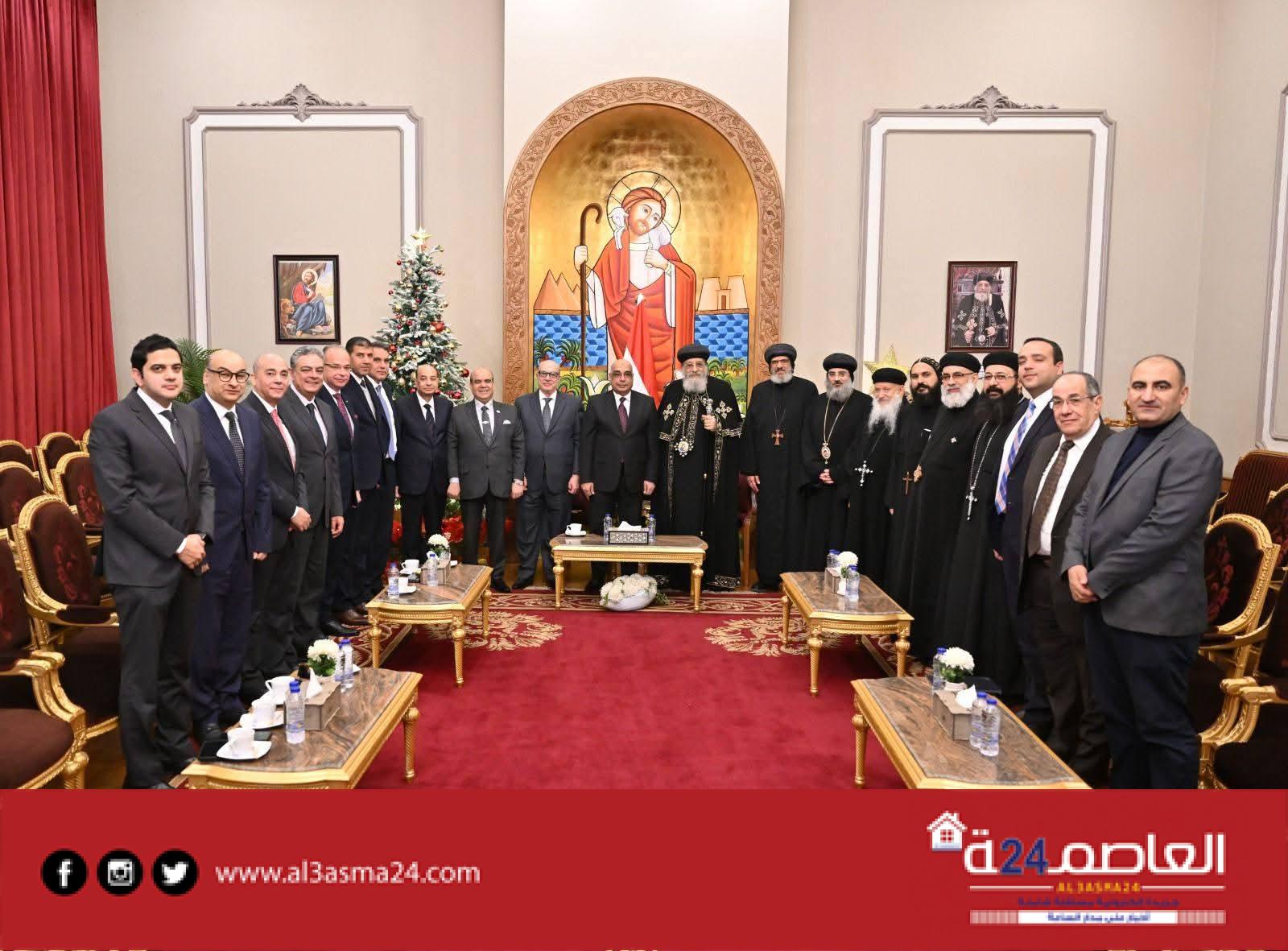 زار” المستشار/ عدنان فنجري، وزير العدل، يرافقه عدد من مساعديه إلى المقر البابوي بالكاتدرائية المرقسية بالعباسية، لتقديم التهنئة لقداسة البابا تواضروس الثاني، بابا الإسكندرية وبطريرك الكرازة المرقسية بمناسبة عيد الميلاد المجيد