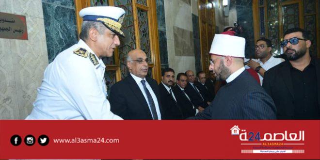 جاء علي رأس الحاضرين مندوبأ رسميا عن الرئيس عبد الفتاح السيسي رئيس الجمهورية والدكتور ” أسامة الأزهرى وزير الأوقاف والدكتور ” شوقي علام مفتى الجمهورية والمستشار محمود فوزي وزير الشئون النيابية والقانونية والتواصل السياسي والمستشار عدنان فنجري وزير العدل والدكتور ” إبراهيم صابر محافظ القاهرة والمستشار محمد شوقي النائب العام