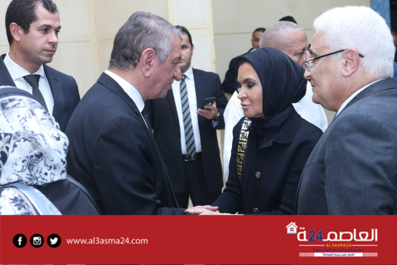 وجاء علي رأس الحاضرين السيدة أنتصار السيسي قرينة الرئيس عبد الفتاح السيسى رئيس الجمهورية والسيدة وجيدة طنطاوي أرملة المشير الراحل محمد حسين طنطاوي وزير الدفاع الأسبق