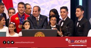 الرئيس السيسي ” يطلب من أطفال قادرون باختلاف” الوقوف بجواره خلال إلقاء كلمته